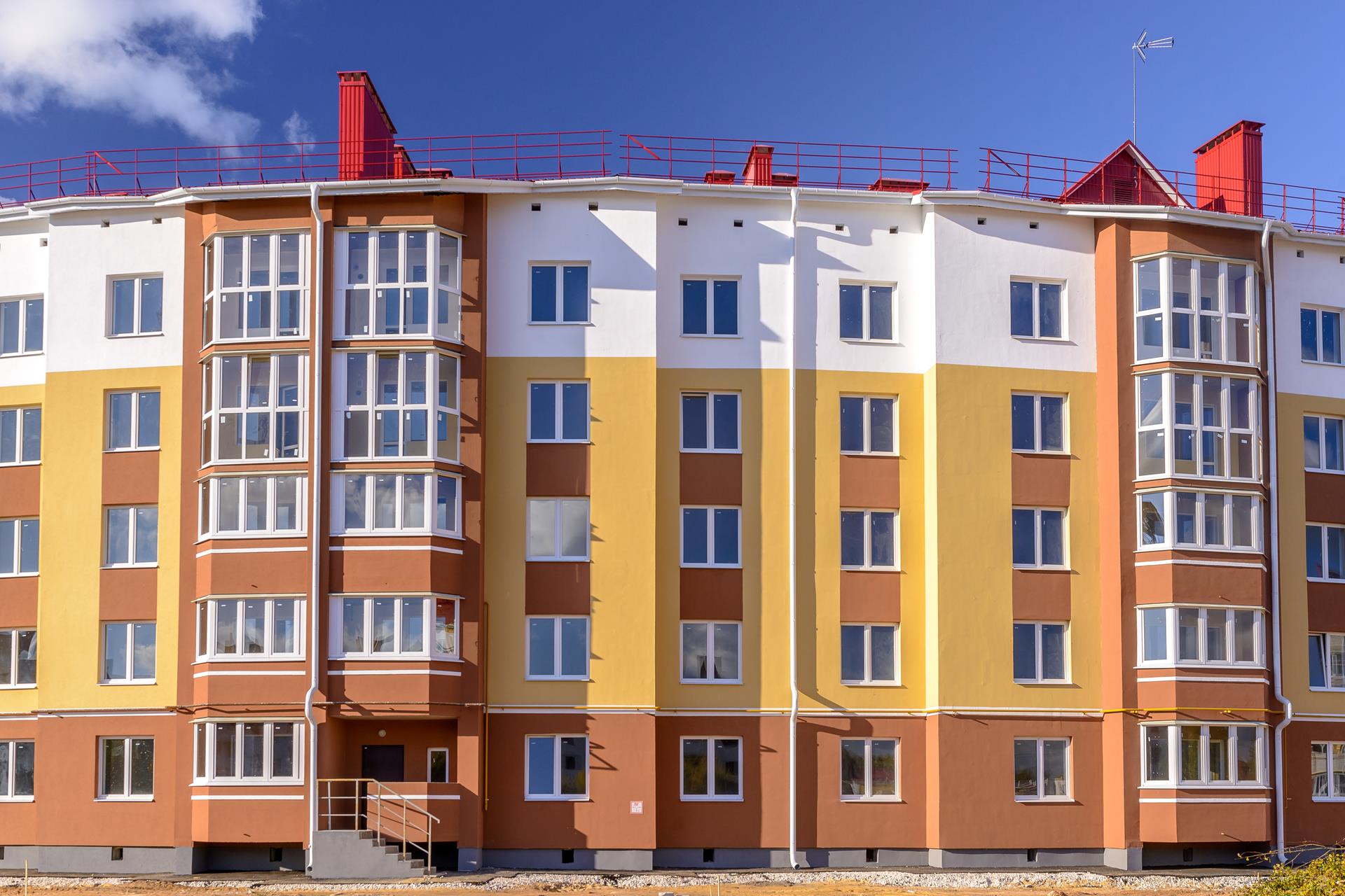 Фасад и места общего пользования в  ЖК "Панорама в Славном" выполнены в единой цветовой концепции со всеми другими объктами проекта. Отличительной особенностью фасада являются остекленные лоджии.