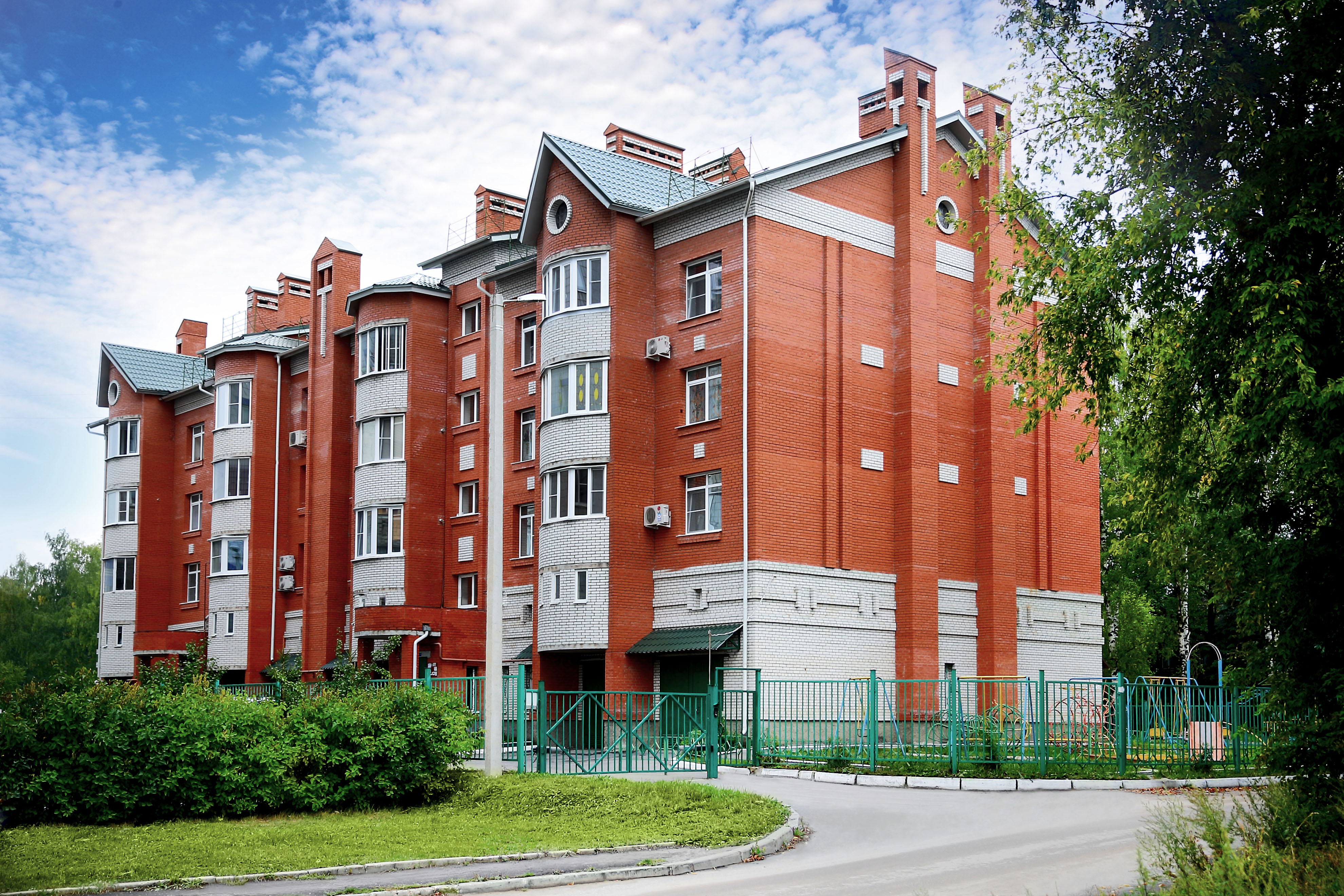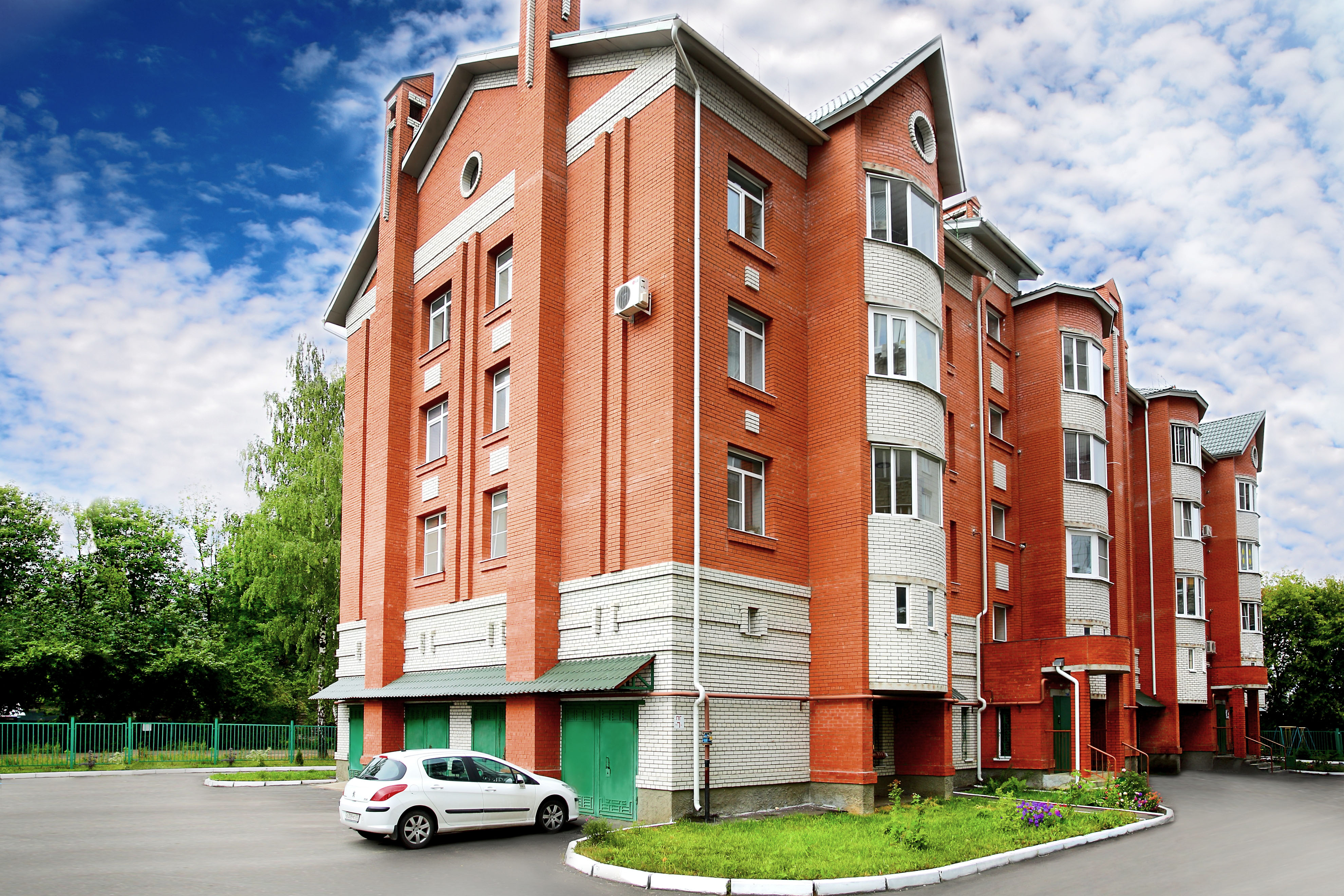 4-х этажный 18-ти квартирный кирпичный жилой дом с автономным поквартирным отоплением. В уровне первого этажа расположены гаражи для жителей дома.